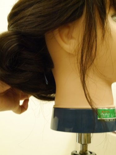 往上捲起前別忘了要先將辮子拉澎鬆喔!這樣子盤髮才不會過於單薄;在調整位置時外圍處可利用U型夾自然固定,內層再用毛夾穩固夾好位置就不會跑掉了。快速變身時最需要的就是髮飾的運用了,事前先準備好可搭配整體服裝的髮飾,可為約會更加分喔!