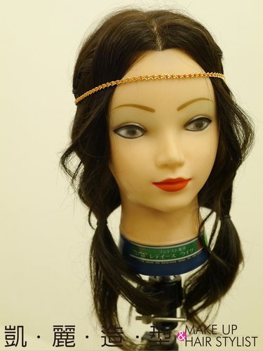 三.瀏海區用大尺寸電熱棒向外翻捲一下,最後再載上髮飾即可。