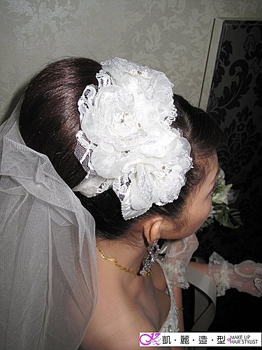 所以頭飾上也特別選了 美麗的蕾絲布+具蕾絲原素的手工花