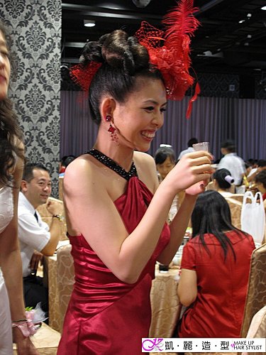 這頂紅色羽毛帽柸很好看呦!而且別於一般的是還多了"漂亮的水鑽"