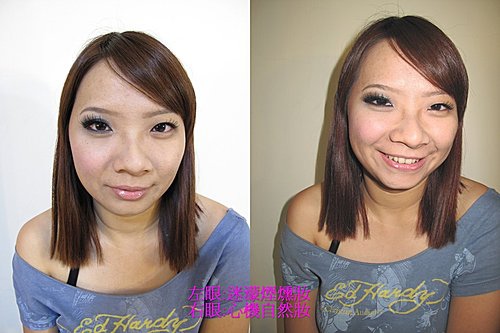 左眼:迷濛煙燻妝 右眼:心機自然妝